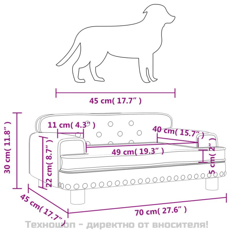 Снабдете вашето пухкаво приятелче с топло и удобно място за почивка с това луксозно легло за кучета! Удобен и мек материал: Диванът за домашни любимци е подплатен с плътна и мека пяна и покрит с кадифе, осигурявайки достатъчно опора и превъзходен комфорт за вашия прекрасен домашен любимец да почива на него.Здрава и издръжлива рамка: Рамката от масивна борова дървесина осигурява здравина и издръжливост на кучешкия диван. Четирите крака също добавят допълнителна стабилност.Стилен дизайн: Този диван за кучета се съчетава идеално с всяка тема на декора и е чудесно допълнение към вашата всекидневна или спалня. Забележка:Моля, измерете дължината на тялото на вашия домашен любимец преди покупка.