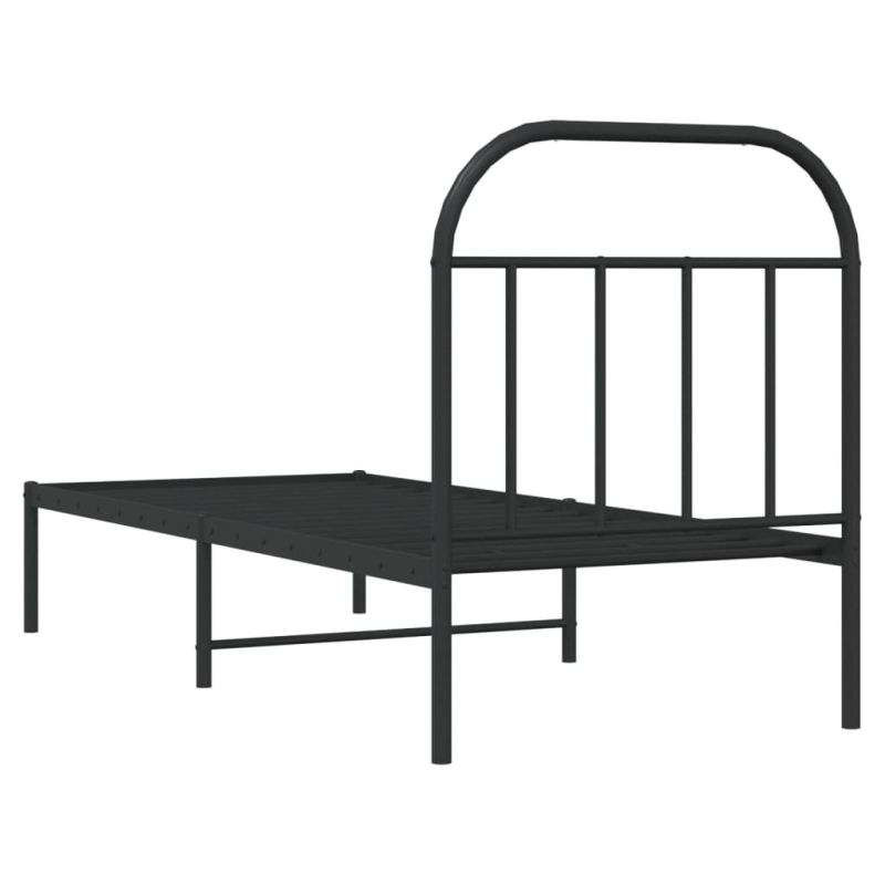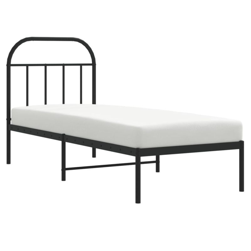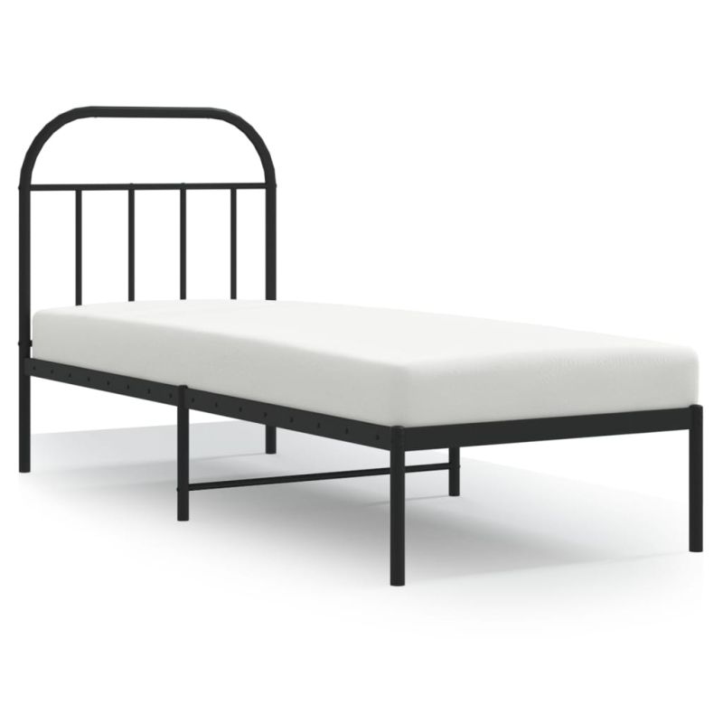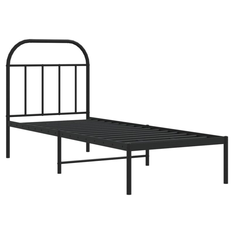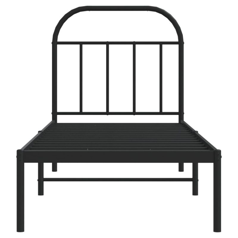 Метална рамка за легло с горна табла, черна, 75x190 см