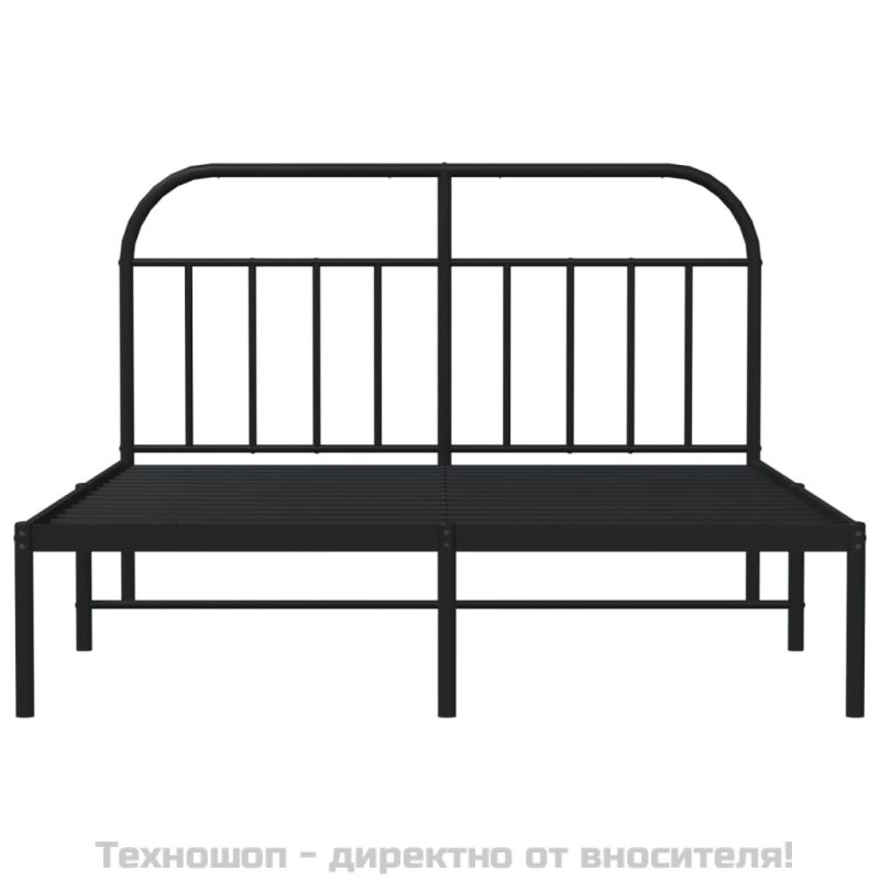 Метална рамка за легло с горна табла, черна, 150x200 см