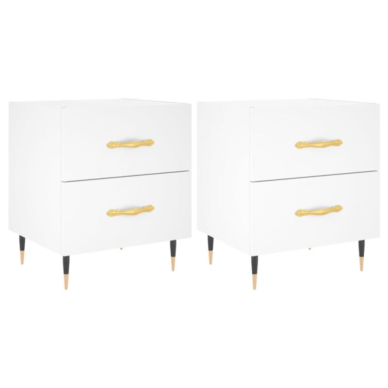 Нощни шкафчета, 2 бр, бели, 40x35x47,5 см, инженерно дърво