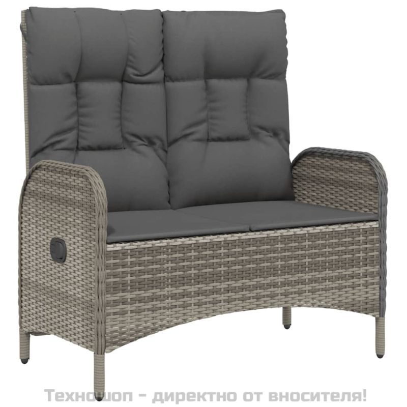 Градински трапезен комплект 2 части с възглавници сив полиратан