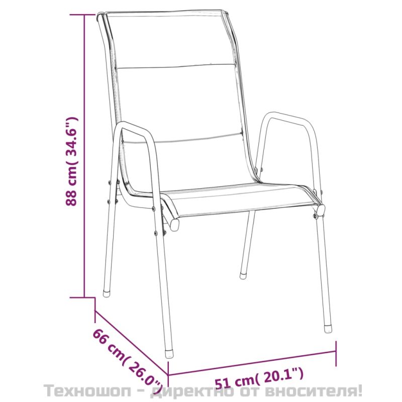 Насладете се на хубава храна или следобеден чай във вашето открито пространство с този градински трапезен комплект! Отличаващ се с елегантен дизайн, той ще се превърне във фокусната точка на вашата градина и вътрешен двор! Стабилна рамка: Креслата и масата са с прахово боядисана стоманена конструкция, което ги прави здрави и стабилни.Издръжлив материал: Благодарение на здравия плат текстилен с подплата, тези столове за открито са изключително комфортни, устойчиви на атмосферни влияния и лесни за почистване.Здрав плот: Плотът е изработен от закалено стъкло, което го прави лесен за почистване. Освен това плотът е идеален за поставяне на закуски, напитки, вази, купи с плодове или други декоративни елементи.Удобно седене: Проектирано с извита облегалка и подлакътници, градинското кресло има по-ергономична форма за максимален комфорт. Добре е да се знае:За да сте сигурни, че вашите външни мебели ще останат красиви, ви препоръчваме да ги защитите с водоустойчиво покривало.