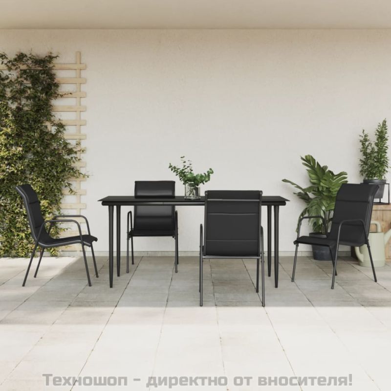 Градински трапезен комплект 5 части черен стомана и текстилен