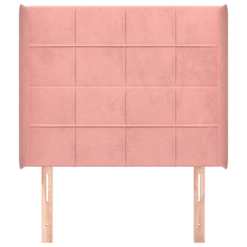 Горна табла за легло с уши, розова, 93x16x118/128 см, кадифе