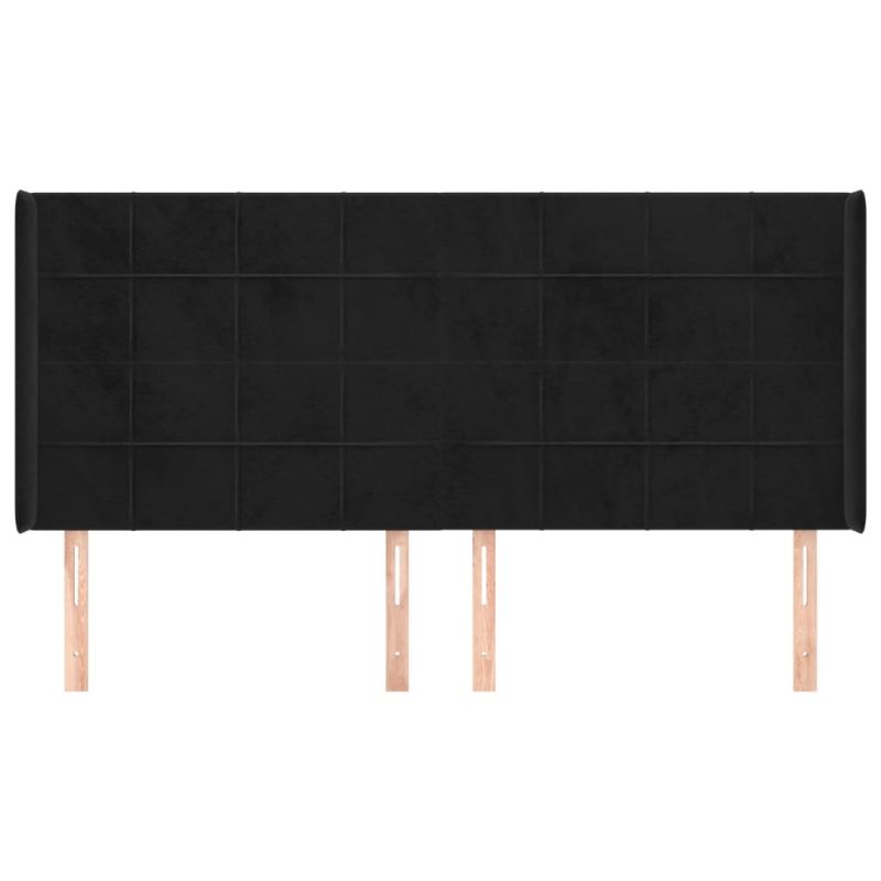 Горна табла за легло с уши, черна, 183x16x118/128 см, кадифе