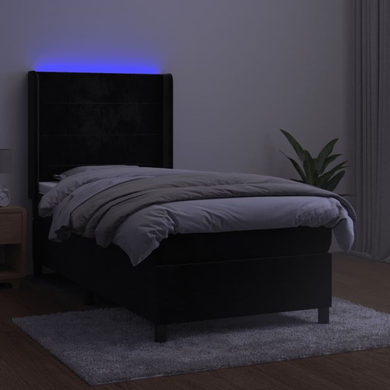 Боксспринг легло с матрак и LED, черно, 90x200 см, кадифе