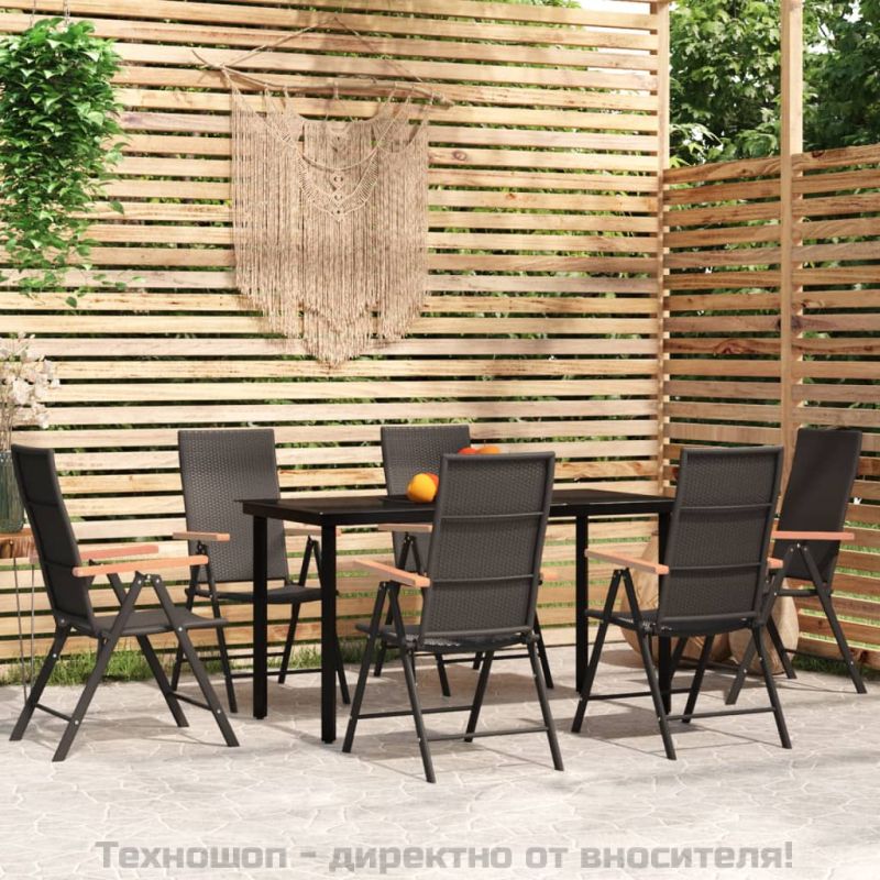 Градински трапезен комплект, 7 части, черен