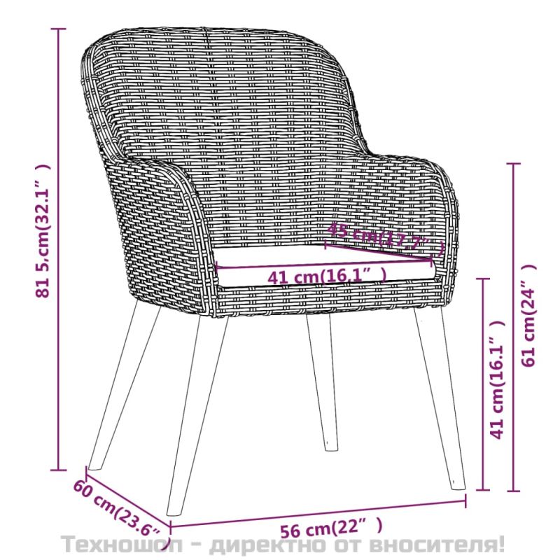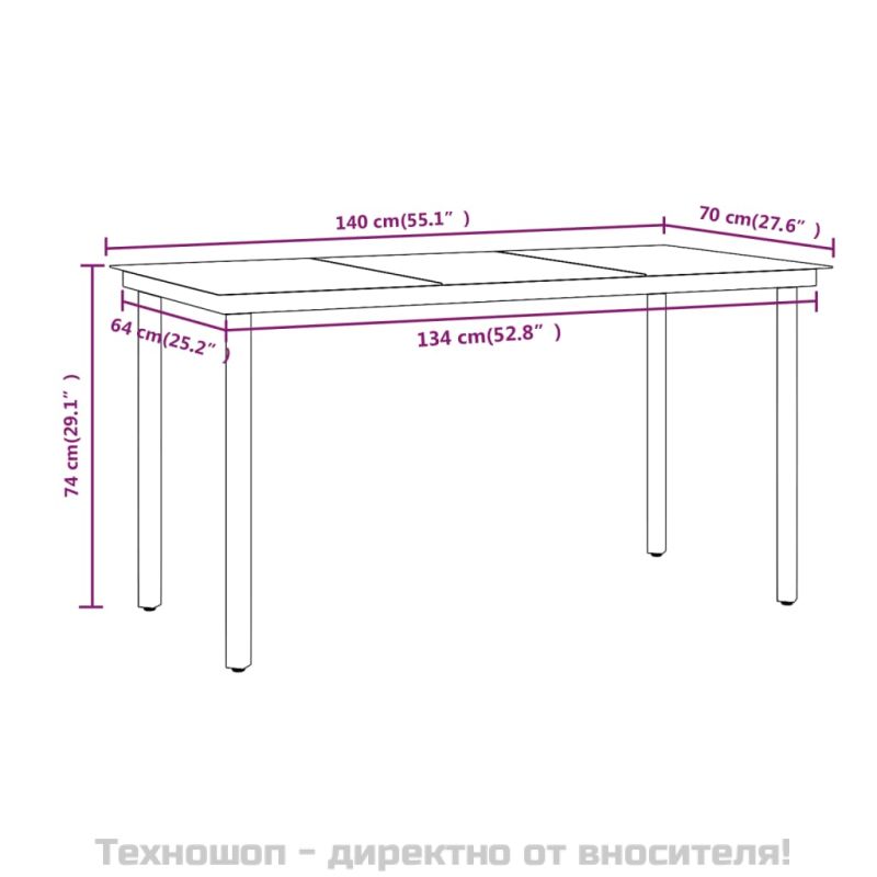 Този стилен градински трапезен комплект е предназначен да бъде фокусната точка на вашата градина или вътрешен двор! Той е чудесен избор за хранене на открито или за почивка на открито! Прахово боядисаните стоманени рамки правят масата и столовете здрави и стабилни за ежедневна употреба на открито. Благодарение на водоустойчивия PE ратан, столовете са лесни за почистване и издръжливи. Ергономично проектираната форма и дебело подплатените, подвижни възглавници с пълнеж от пяна осигуряват максимален комфорт при седене. Полиестерните калъфи за възглавници с ниска поддръжка могат лесно да се свалят и перат. Освен това, гладкият стъклен плот се почиства лесно с влажна кърпа и е идеален за поставяне на ястия, напитки и различни декоративни предмети. Забележка: За да удължите живота на вашите градински мебели, ви препоръчваме да ги защитите с водоустойчиво покривало.