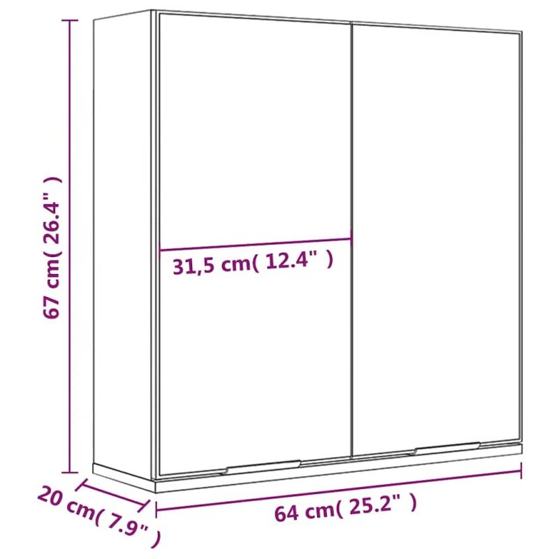 Шкаф за баня с огледало, опушен дъб, 64x20x67 см