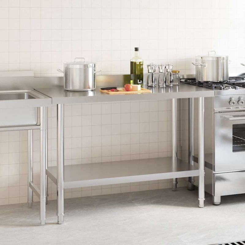Тази висока и здрава работна маса е идеална за приготвяне и съхранение на храна и е идеална за кухня, бар, ресторант, училище или друго търговско помещение. Тя е изработена от висококачествена неръждаема стомана за дългосрочно и постоянно ползване. Лесно се търка и почиства. Масата включва заден панел за допълнителен комфорт. Долната част е проектирана с рафт, за да предостави пространство за съхранение. Изравняващите крачета с нехлъзгащ дизайн предлагат чудесна стабилност и защита на пода. Работната маса се сглобява лесно. ВНИМАНИЕ: За да се предотврати преобръщане, този продукт трябва да се използва с предоставения анкер за стена.