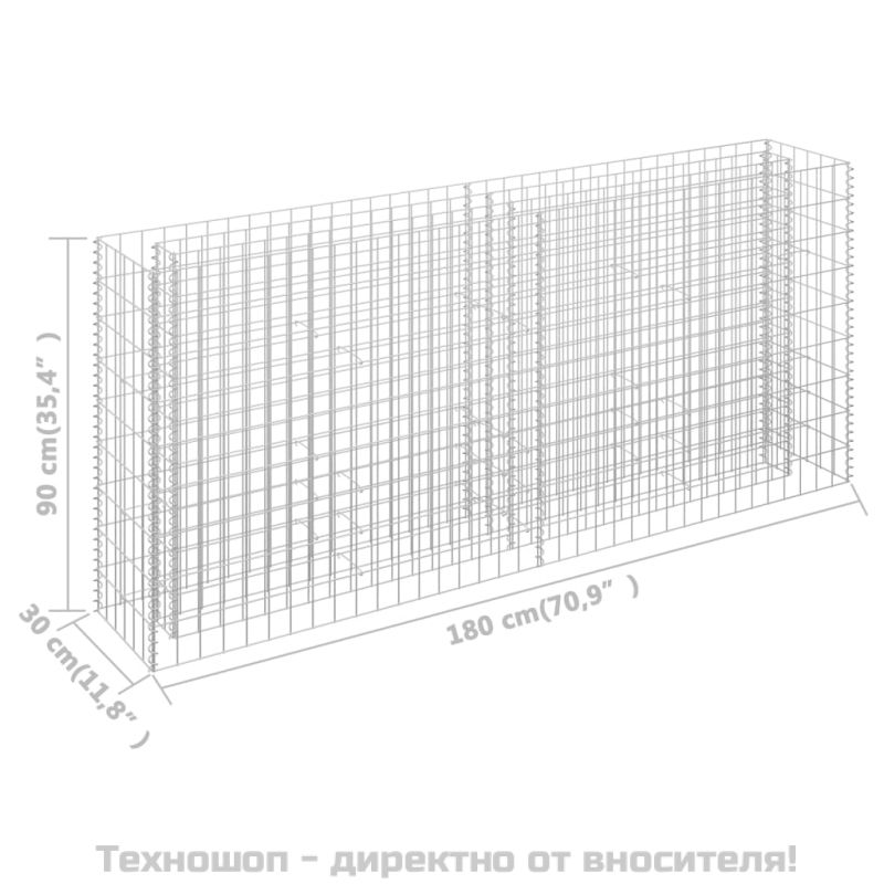 Габион повдигната леха, поцинкована стомана, 180x30x90 см