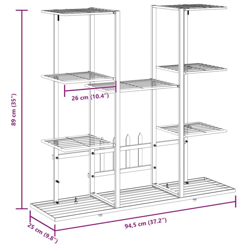 Тази стойка за цветя е идеално решение за съхранение и нареждане на вашите растения и различни други предмети. Първокласен материал: Този рафт за растения е изработен от желязо, което е издръжливо и не изисква поддръжка, гарантиращо години на експлоатация. Здрава и стабилна рамка: Металната рамка на стойката за цветя гарантира здравина и стабилност.Полезна етажерка: Поставката за растения осигурява просторно пространство за нареждане на вашите прекрасни растения. Може да служи и като стелаж за витрини, рафт за съхранение и др.