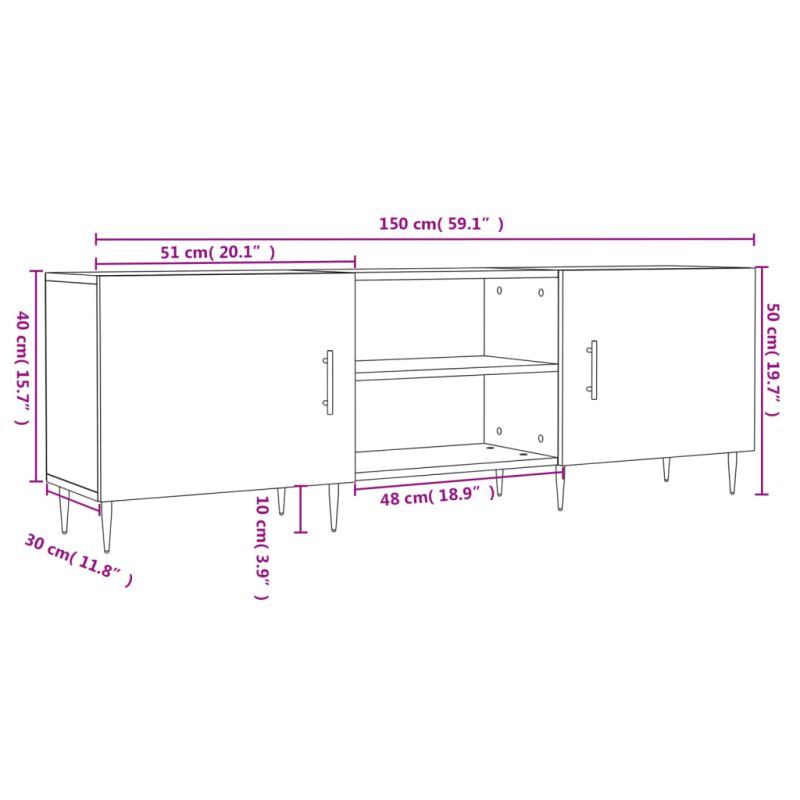 ТВ шкаф, сив сонома, 150x30x50 см, инженерно дърво