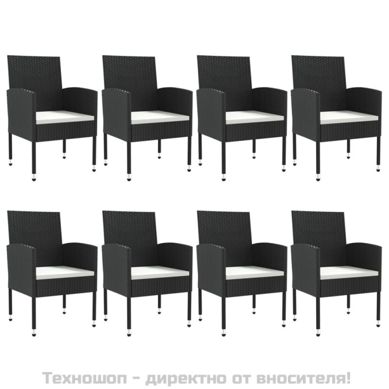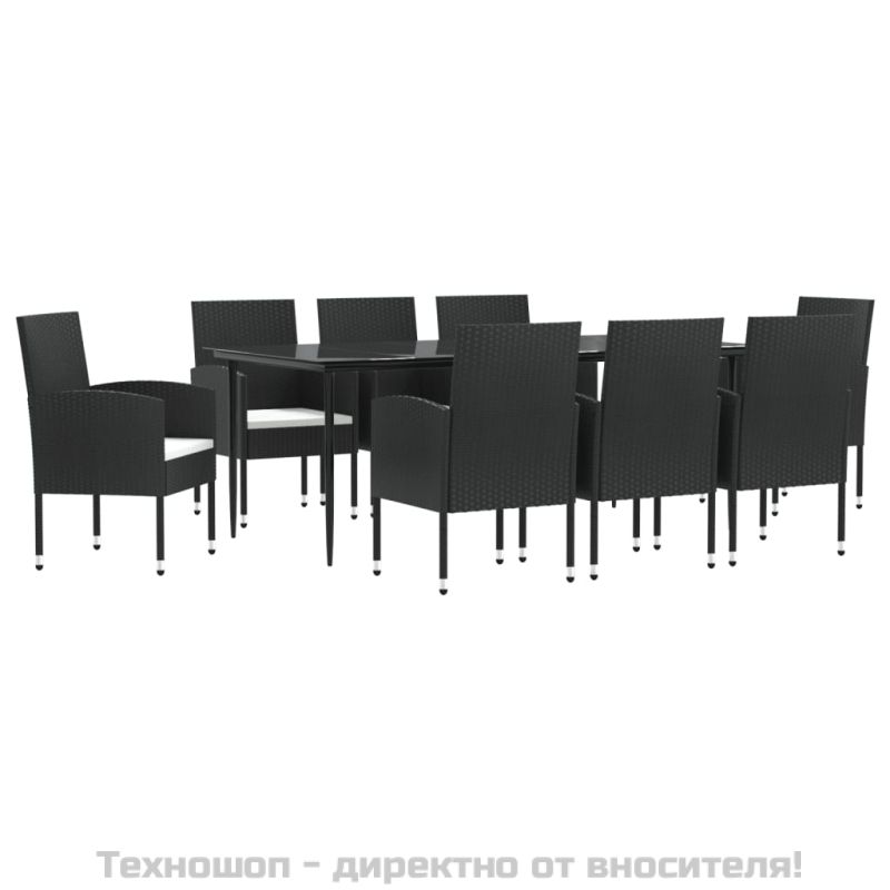 Градински трапезен комплект 9 части черен полиратан и стомана