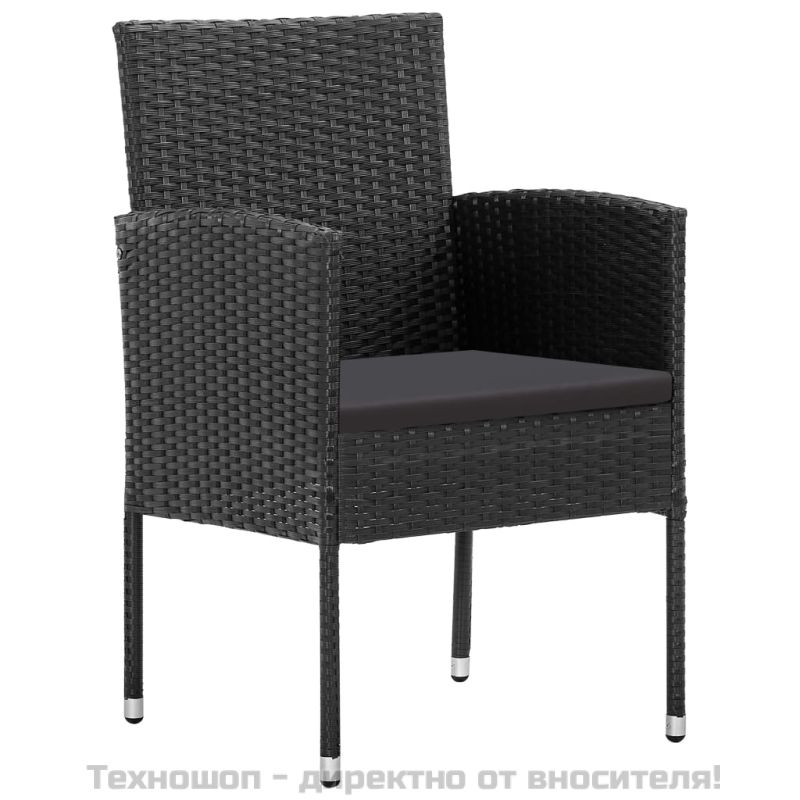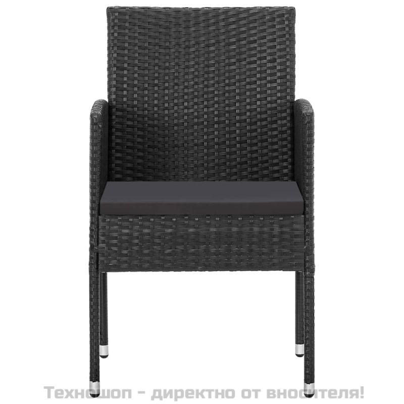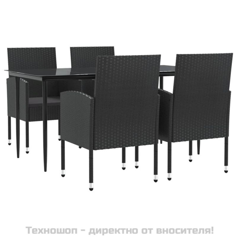 Градински трапезен комплект 5 части черен полиратан и стомана
