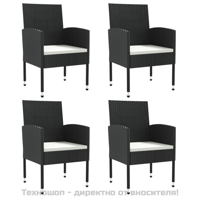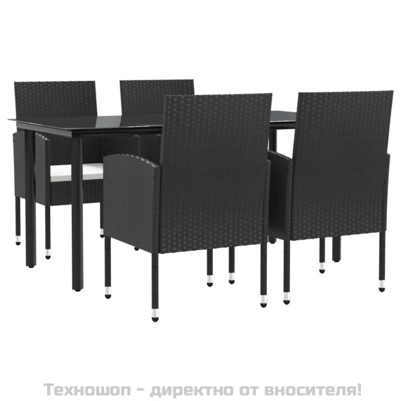 Градински трапезен комплект 5 части черен полиратан и стомана