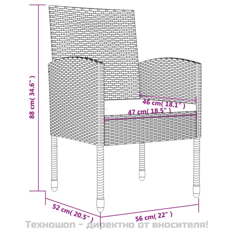 Насладете се на хубава храна или следобеден чай във вашето открито пространство с този градински трапезен комплект! Отличаващ се с елегантен дизайн, той ще се превърне във фокусната точка на вашата градина и вътрешен двор! Издръжлив материал: Полиратанът е материал с изключителна устойчивост и издръжлив за различни метеорологични условия. Той също има нужда от малко поддръжка.Здрава рамка: Този комплект градинска маса и столове са изработени със стоманена рамка, която гарантира здравина и стабилност.Практичен плот: Гладкият плот на масата за трапезария е изработен от закалено стъкло, което се почиства лесно с влажна кърпа. В допълнение, здравият плот е идеален за поставяне на ястия, напитки и други декоративни елементи.Удобно изживяване на седалката: Дебелите и подвижни възглавници на седалката са включени за вашия комфорт. Добре е да се знае:За да сте сигурни, че вашите външни мебели ще останат красиви, ви препоръчваме да ги защитите с водоустойчиво покривало.