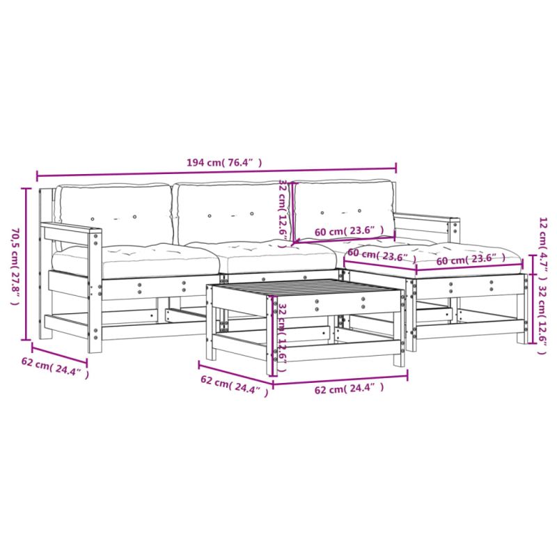 Този дървен градински лаундж комплект, който се отличава с дизайн на летви и меки възглавници, ще бъде чудесно допълнение към вашата градина, вътрешен двор или тераса, за да се насладите на уютно време със семейството или приятелите си. Масивно дърво дугласка ела: Масивната дугласка дървесина е изключително издръжлива дървесина, която е подходяща за използване на открито. Дугласката дървесина е достатъчно здрава, за да функционира с минимални грижи, дори под въздействието на атмосферните влияния.Здрава и стабилна рамка: Дървената рамка прави лаундж комплекта здрав и стабилен за ежедневна употреба на открито.Удобно седене: Облегалката и подлакътника добавят повече комфорт при седене на градинския комплект мебели. Освен това дебело подплатените възглавници осигуряват комфорт по време на седене.Модулен дизайн: Комплектът мебели е гъвкав и лесен за преместване. Можете да я комбинирате с други модулни сегменти в уеб магазина, за да създадете свои лични конфигурации на градински лаундж комплект! Добре е да се знае:За да сте сигурни, че вашите външни мебели ще останат красиви, ви препоръчваме да ги защитите с водоустойчиво покривало.
