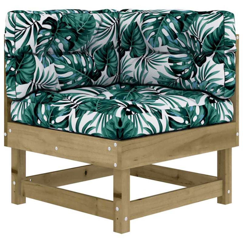 Тези дървени ъглови дивани, които се отличават с дизайн на летви и меки възглавници, ще бъдат чудесно допълнение към вашата градина, вътрешен двор или тераса, за да се насладите на уютно време със семейството или приятелите си. Импрегнирана дървесина: Масивната борова дървесина е красив естествен материал. Боровата дървесина е с продълговати шарки, а чеповете придават на материала характерния му рустик вид. Импрегнирането е процес на запазване, който се извършва с помощта на автоклави. Обработката под налягане повишава устойчивостта на гниене и атмосферни влияния.Здрава и стабилна рамка: Дървените рамки правят градинския диван здрав и стабилен за ежедневна употреба на открито.Удобно седене: Облегалката добавя повече комфорт при седене на дивана за открито. Освен това дебело подплатената възглавница осигурява комфорт по време на седене.Модулен дизайн: Секционният диван е гъвкав и лесен за преместване. Можете да го комбинирате с други модулни сегменти в уеб магазина, за да създадете свои лични конфигурации на градински лаундж комплект! Добре е да се знае:За да сте сигурни, че вашите външни мебели ще останат красиви, ви препоръчваме да ги защитите с водоустойчиво покривало. Максимално 110 кг на седалка.