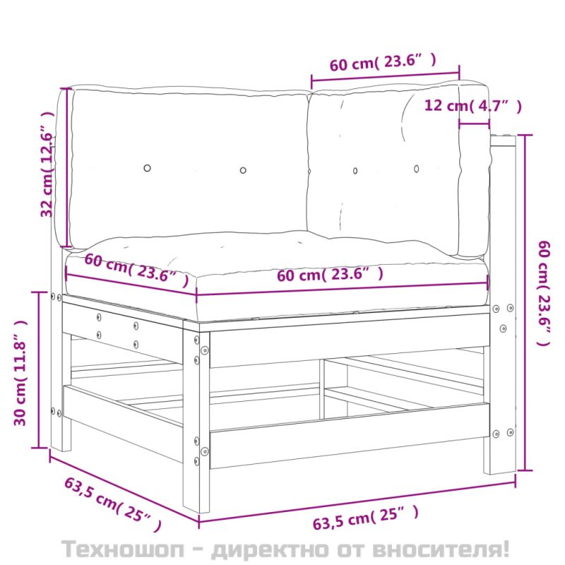 Този дървен ъглов диван, който се отличава с дизайн на летви и меки възглавници, ще бъде чудесно допълнение към вашата градина, вътрешен двор или тераса, за да се насладите на уютно време със семейството или приятелите си. Масивна борова дървесина: Масивната борова дървесина е красив естествен материал. Боровата дървесина е с продълговати шарки, а чеповете придават на материала характерния му рустик вид.Здрава и стабилна рамка: Дървените рамки правят градинския диван здрав и стабилен за ежедневна употреба на открито.Удобно седене: Облегалката добавя повече комфорт при седене на дивана за открито. Освен това дебело подплатената възглавница осигурява комфорт по време на седене.Модулен дизайн: Секционният диван е гъвкав и лесен за преместване. Можете да го комбинирате с други модулни сегменти в уеб магазина, за да създадете свои лични конфигурации на градински лаундж комплект! Добре е да се знае:За да сте сигурни, че вашите външни мебели ще останат красиви, ви препоръчваме да ги защитите с водоустойчиво покривало. Максимално 110 кг на седалка.