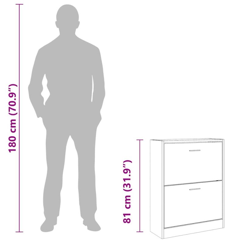 Този шкаф за обувки с модерен и стилен дизайн е отлична мебел за организирано съхранение на вашите обувки. Подходящ е за антре, фоайе, хол, спалня и други места, където желаете да го поставите. Издържлив материал: Инженерната дървесина е с изключително качество с гладка повърхност и също така се отличава със здравина, стабилност и устойчивост на влага.Достатъчно място за съхранение: Тази етажерка за обувки разполага с 2 чекмеджета, осигуряващи достатъчно място, където да държите обувките си подръка и добре подредени.Дизайн с падащо чекмедже: Със своя дизайн с падащо чекмедже този шкаф за обувки се отваря и затваря лесно. Забележка:Всеки продукт се доставя с ръководство за сглобяване в кашона за лесно сглобяване. Внимание:За да се предотврати преобръщане, този продукт трябва да се използва с предоставената приставка за стена