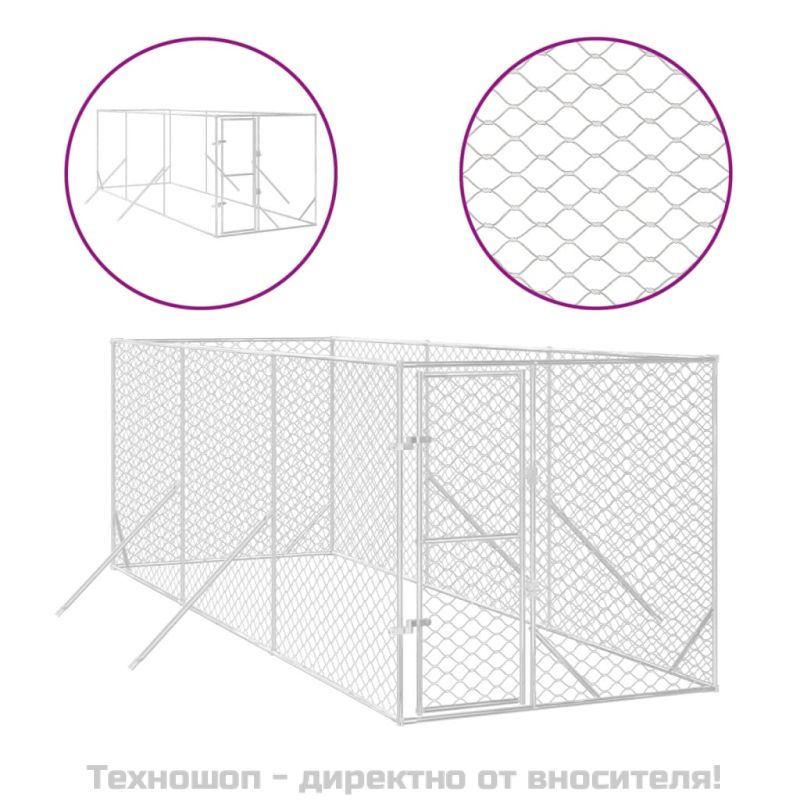 Външна клетка за куче сребриста 2x6x2 м поцинкована стомана