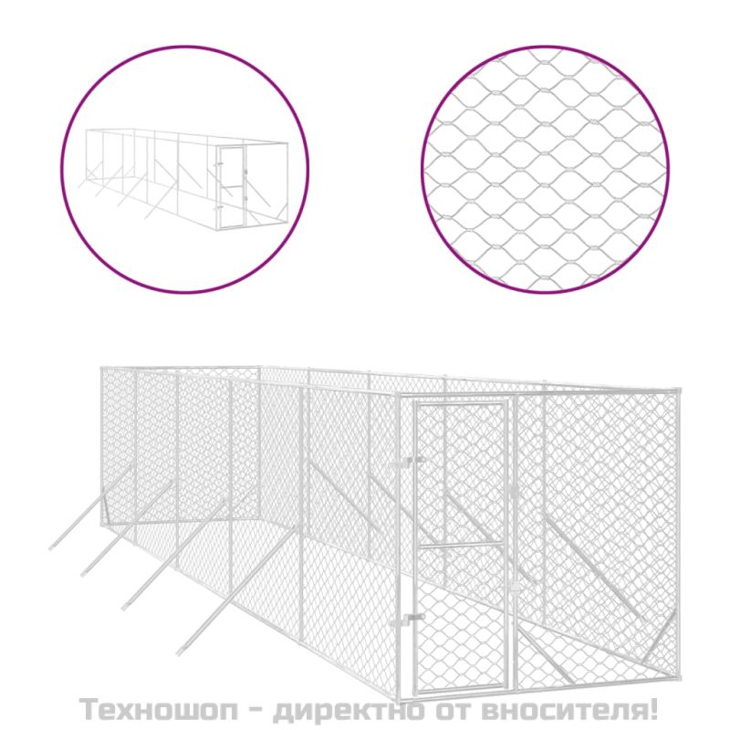 Външна клетка за куче сребриста 2x10x2 м поцинкована стомана