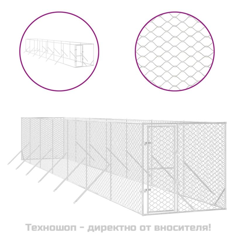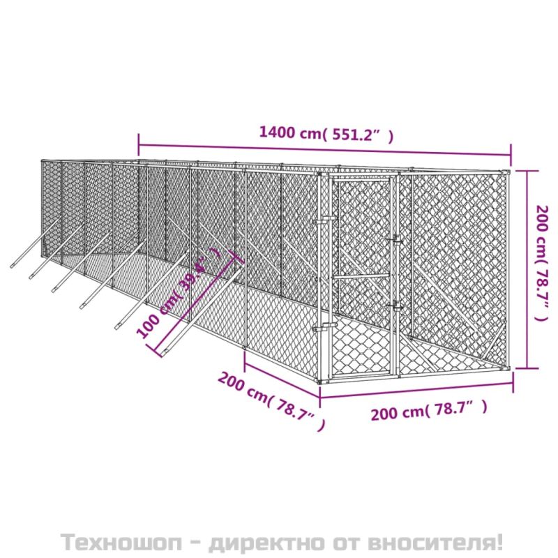 Външна клетка за куче сребриста 2x14x2 м поцинкована стомана