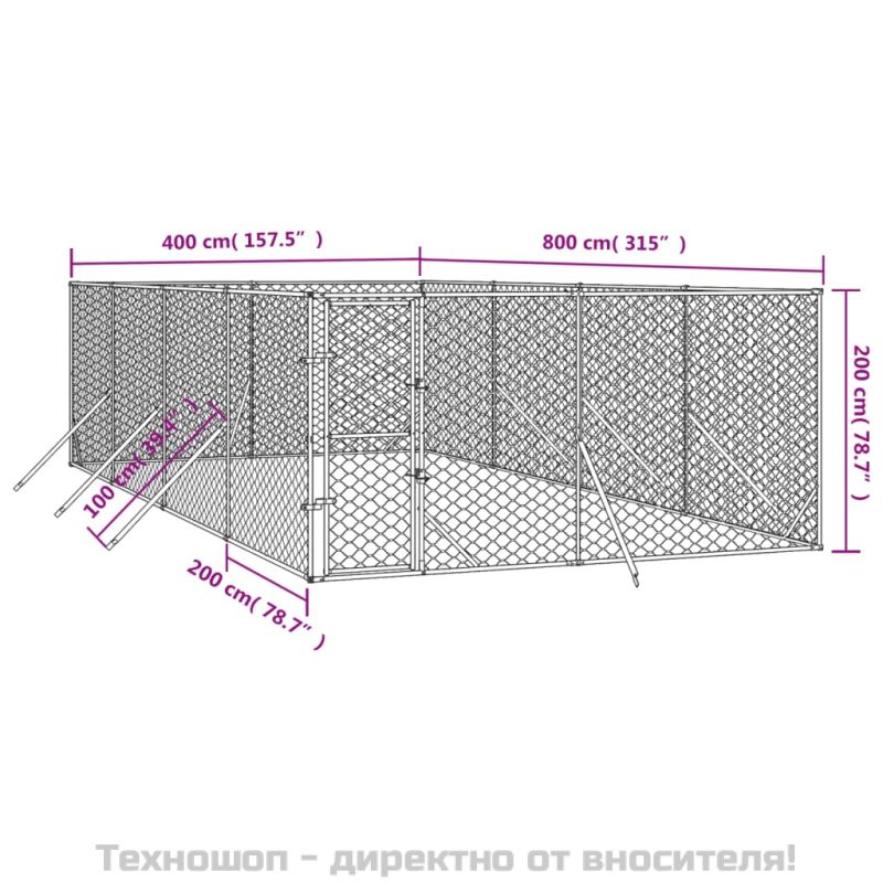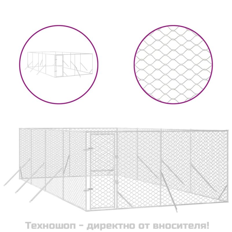 Външна клетка за куче сребриста 4x8x2 м поцинкована стомана