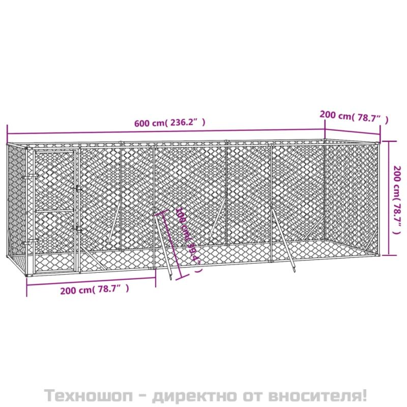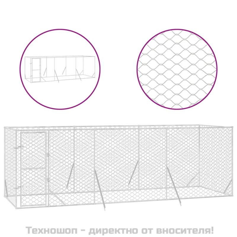 Външна клетка за куче сребриста 6x2x2 м поцинкована стомана