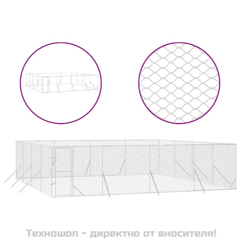 Външна клетка за куче сребриста 8x8x2 м поцинкована стомана