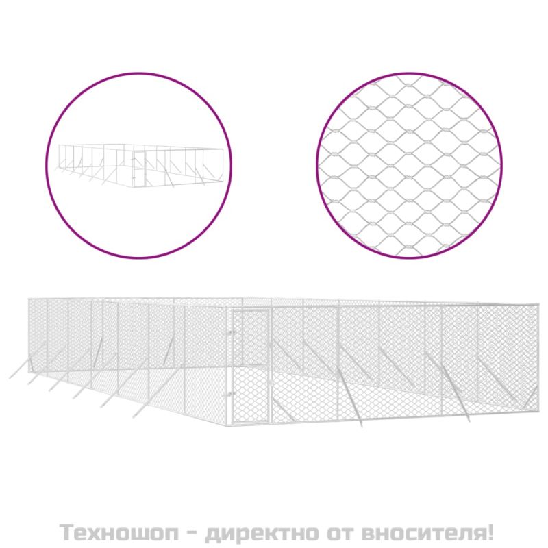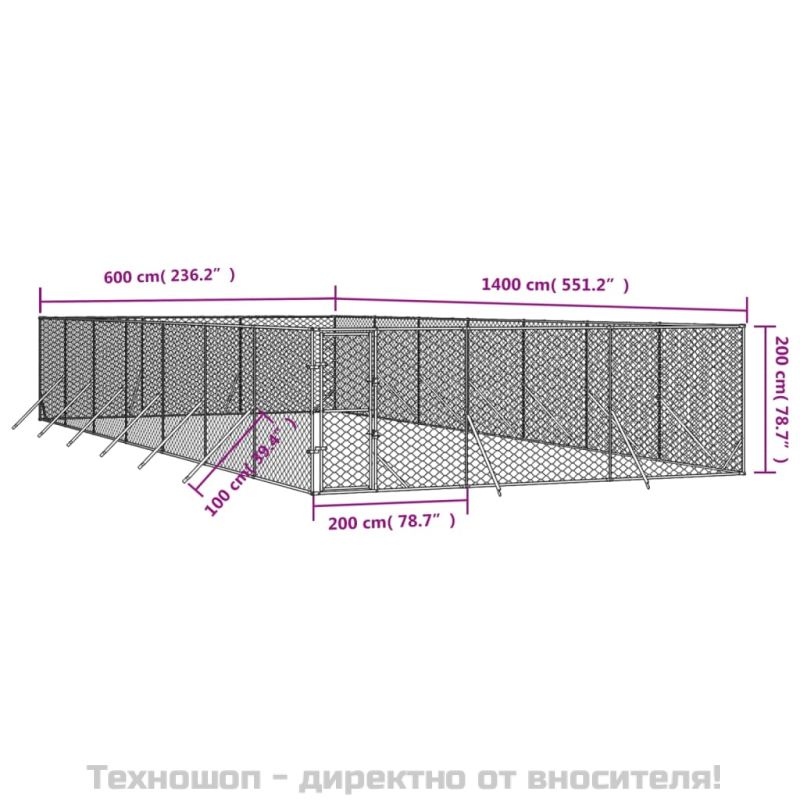 Външна клетка за куче сребриста 6x14x2 м поцинкована стомана