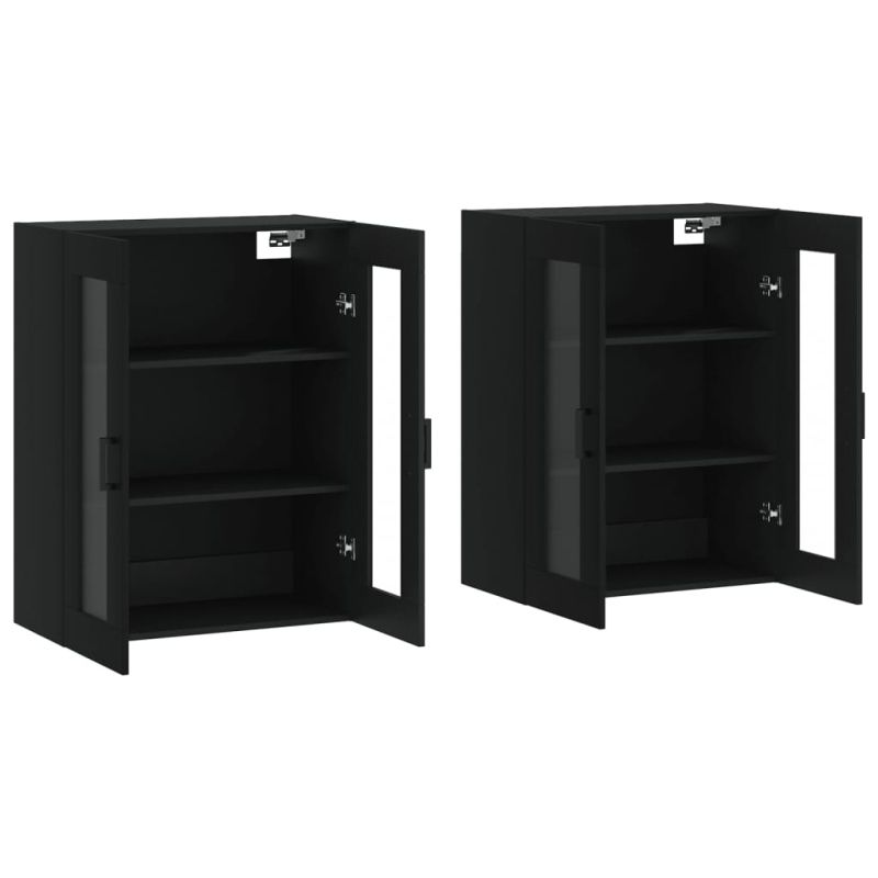 Стенни шкафове, 2 бр, черни, инженерно дърво