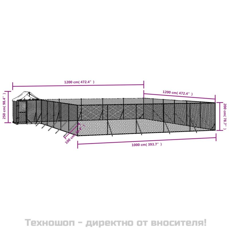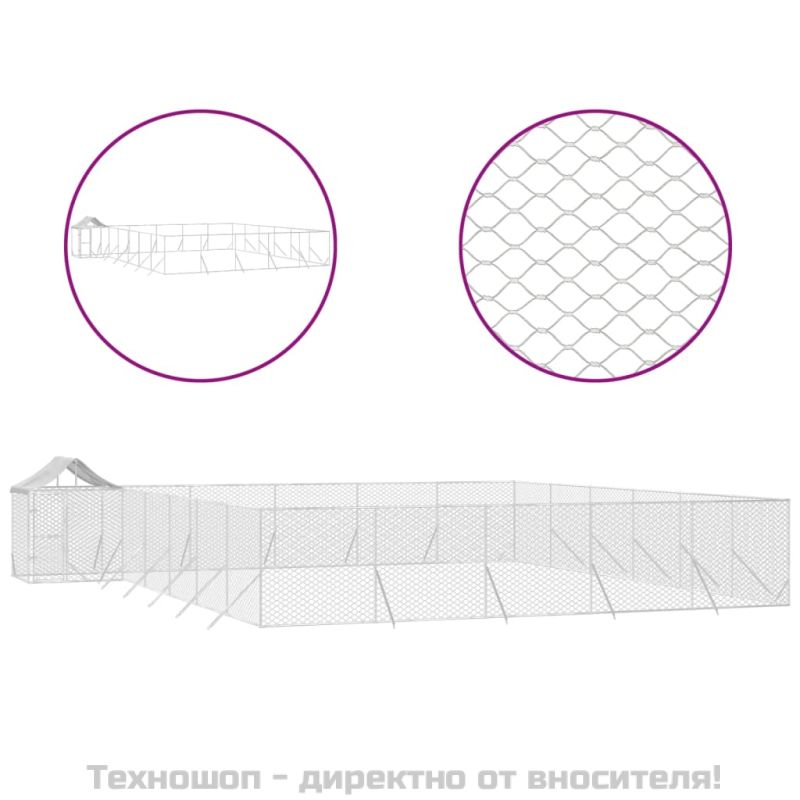 Външна клетка за куче с покрив сребриста 12x12x2,5 м стомана