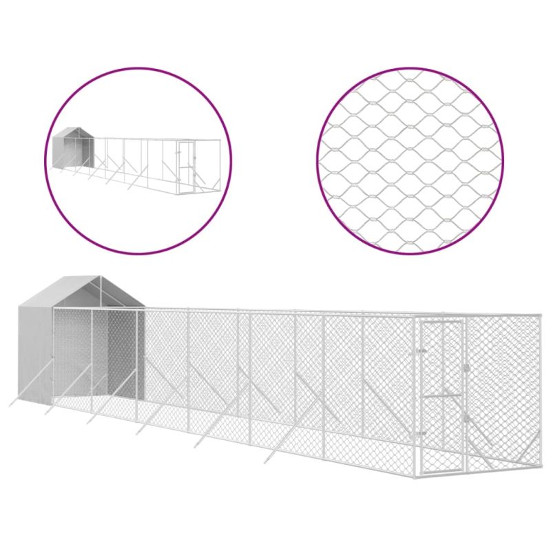 Външна клетка за куче с покрив сребриста 2x14x2,5 м стомана