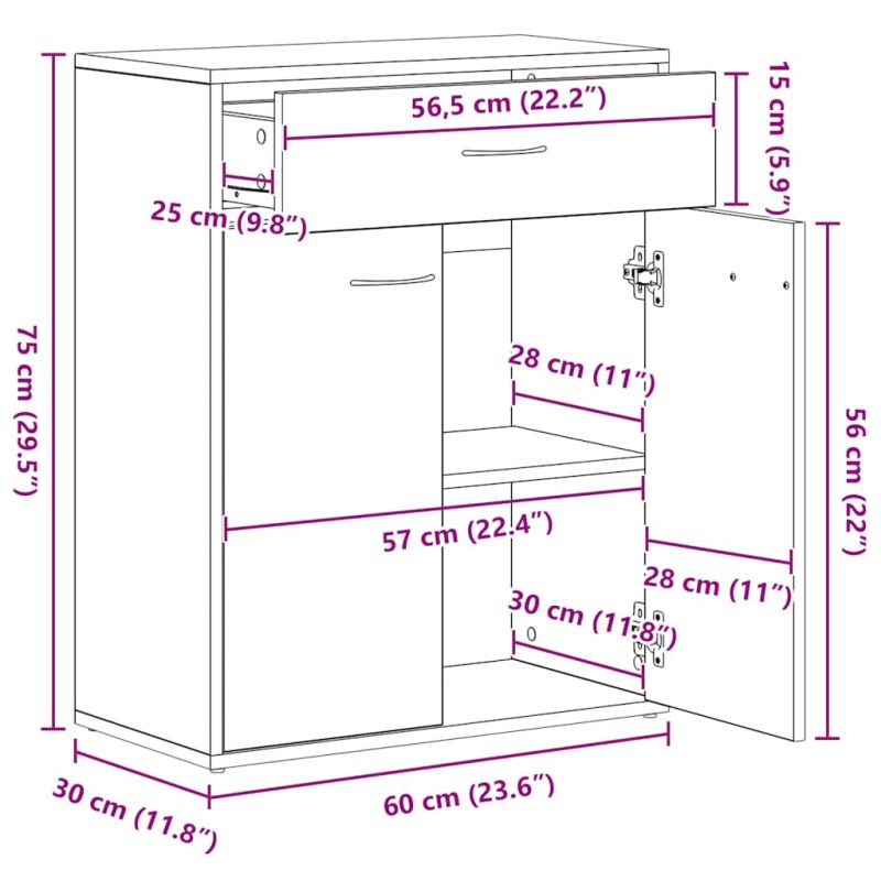 Сайдборд, черен, 60x30x75 см, инженерно дърво