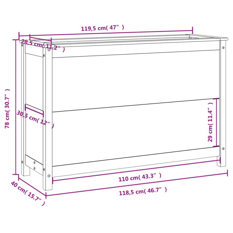 Градинско повдигнато легло, 119,5x40x78 см, бор масив