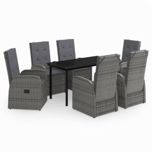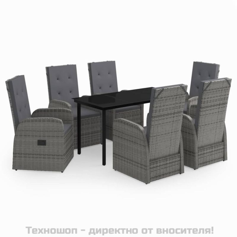 Градински трапезен комплект от 7 части с възглавници сив