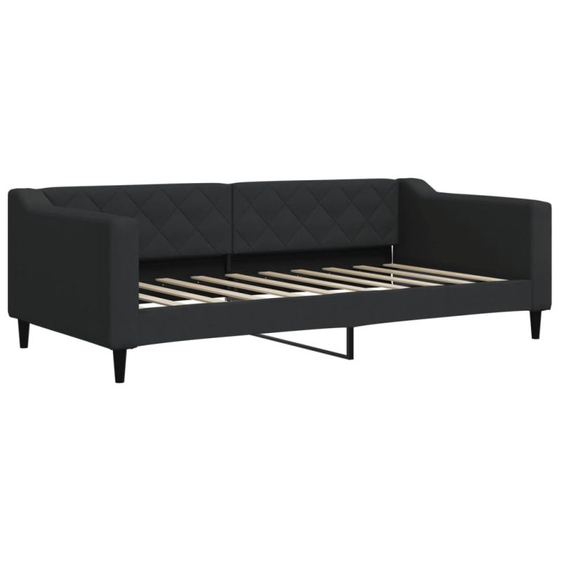 Канапе с изтеглящо легло и чекмеджета черно 90x190 см плат