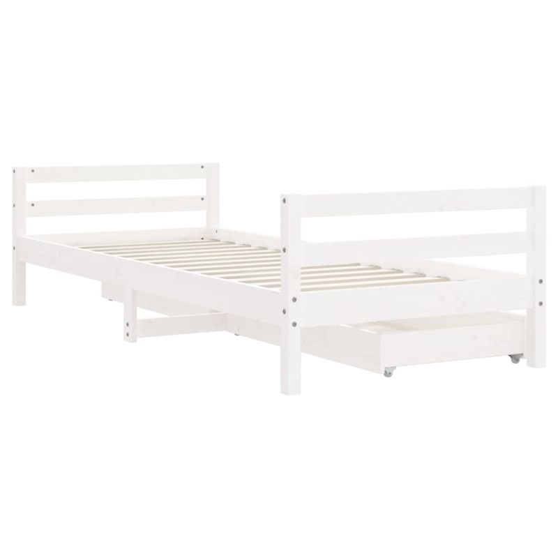 Рамка за детско легло с чекмеджета, бяла, 80x200 см, чам масив