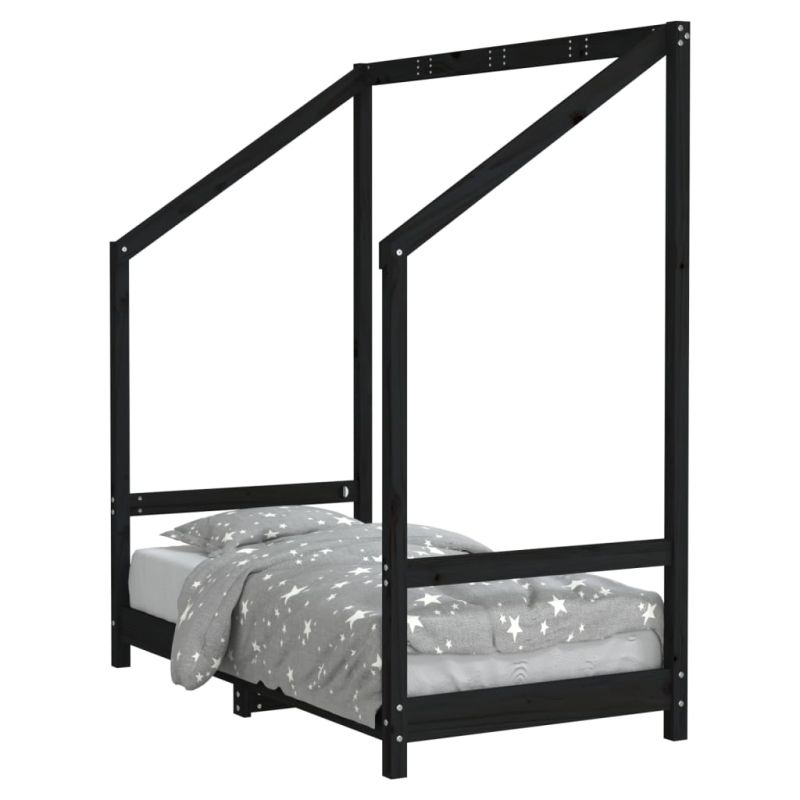 Рамка за детско легло черна 70x140 см масивна борова дървесина