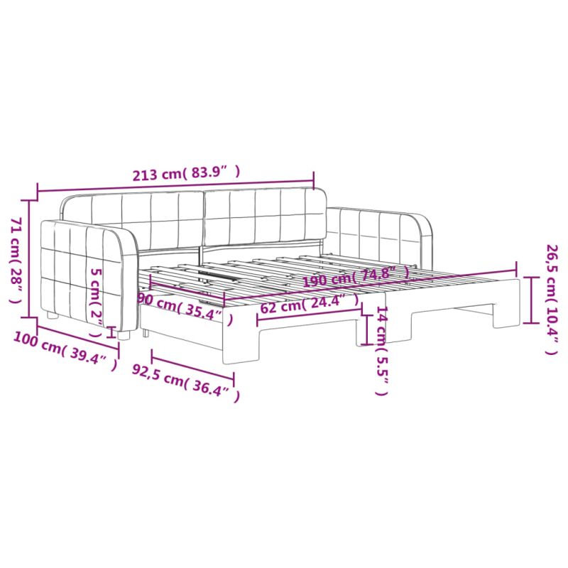 Това канапе 2-в-1 с изтеглящо разтегателно легло, което служи едновременно като диван и легло, е практично и атрактивно допълнение към вашата всекидневна или спалня. Функционална мебел: Канапето функционира като диван през деня и лесно се превръща в двойно легло през нощта чрез издърпване на механизма за изтеглящо разтегателно легло, осигурявайки удобно решение за настаняване на гости и увеличаване на пространството.Меко кадифе: Кадифето е мека и удобна материя, която се усеща приятно върху кожата.Здрава конструкция: Дървената и метална рамка на спалното легло осигурява здравина и стабилност. Добре е да се знае:Матраците не са включени в това легло. Ние предлагаме разнообразна селекция от матраци. Можете да проверите нашия магазин за подходящи матраци.