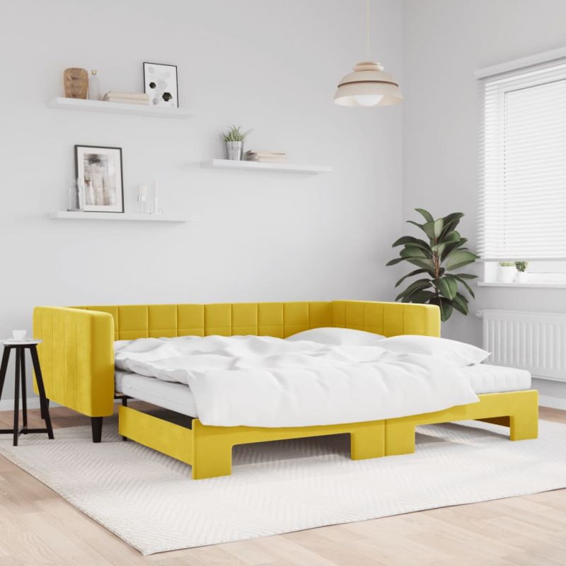Канапе с изтеглящо легло и матраци жълто 100x200 см кадифе