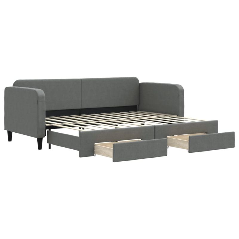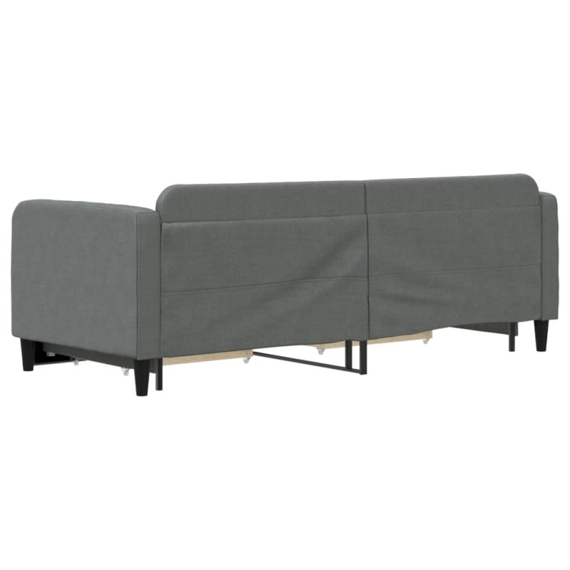 Това канапе 2-в-1 с изтеглящо разтегателно легло, което служи едновременно като диван и легло, е практично и атрактивно допълнение към вашата всекидневна или спалня. Функционална мебел: Канапето функционира като диван през деня и лесно се превръща в двойно легло през нощта чрез издърпване на механизма за изтеглящо разтегателно легло, осигурявайки удобно решение за настаняване на гости и увеличаване на пространството.Достатъчно място за съхранение: Това легло за гости има две чекмеджета с колела, които осигуряват достатъчно място за съхранение на вашите дрехи, чорапи, играчки, възглавници и др.Издръжлива материя и солидна конструкция: Това канапе има здрава рамка от дърво и метал и е тапицирано с издръжлива и удобна материя. Добре е да се знае:Матраците не са включени в това легло. Ние предлагаме разнообразна селекция от матраци. Можете да проверите нашия магазин за подходящи матраци.