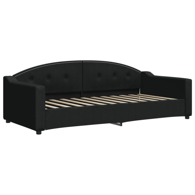 Канапе с изтеглящо легло и чекмеджета черно 90x200 см текстил
