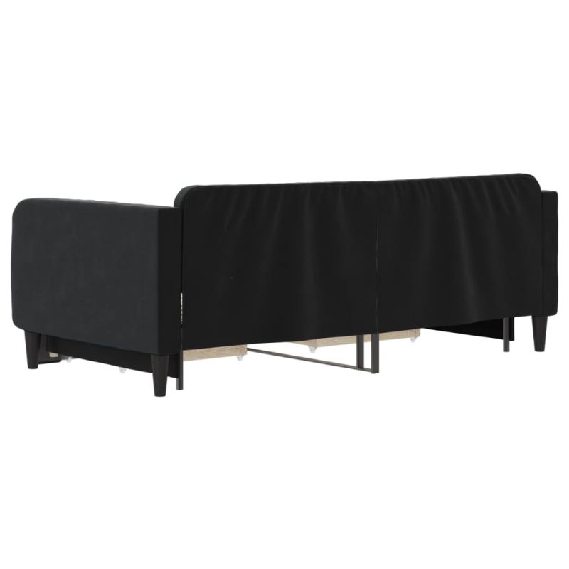 Канапе с изтеглящо легло и чекмеджета черно 90x190 см кадифе