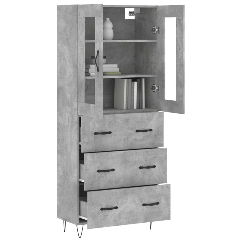Висок шкаф, бетонно сив, 69,5x34x180 см, инженерно дърво