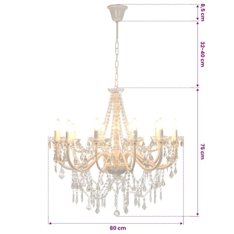 С екстравагантен дизайн, този елегантен полилей с кристални мъниста със сигурност ще създаде смел визуален акцент и ще привлича вниманието във вашия домашен декор. Подходящ е както за жилищна, така и за търговска употреба. Имитиращите свещи основи за крушките и висулките ще добавят усещане за античен чар и ще допринесат за красиво разпръскване на светлина. Можете да изберете и монтирате E14 крушки в различна цветна температура, за да създадете релаксираща и успокояваща атмосфера. Моля, обърнете внимание, че крушките не са включени. С предоставените монтажни материали можете лесно и безопасно да сглобите и монтирате висящия полилей. Този уред не е предназначен за използване от лица (включително деца) с намалени физически, сетивни или умствени способности или с недостатъчен опит и познания, освен ако не са получили надзор или инструкции за използването на уреда от лице, отговорно за тяхната безопасност. Този продукт не е играчка. Не позволявайте на деца да си играят с уреда.