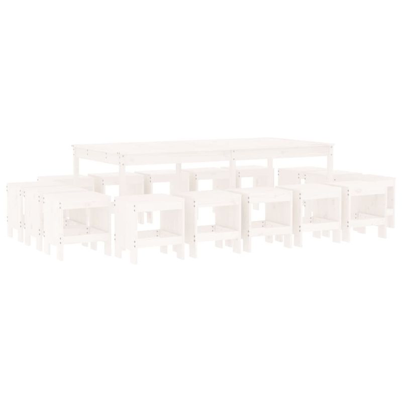 Градински трапезен комплект от 17 части, бял, масивен бор