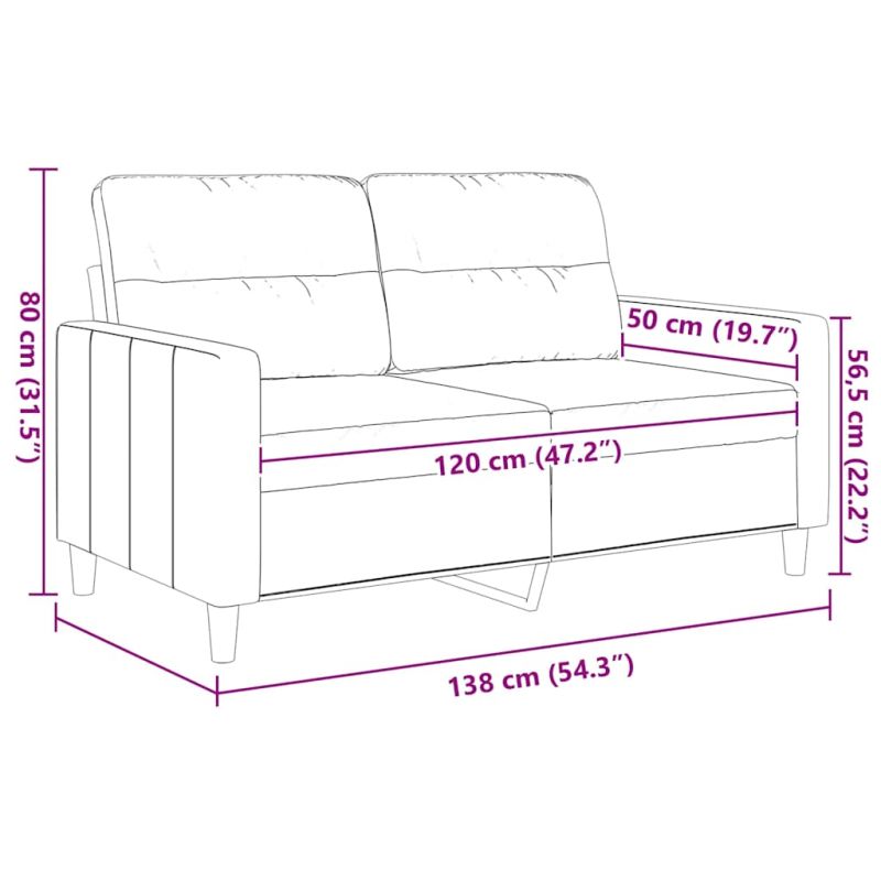 Този 2-местен диван е отлично място за вашето време за разговори, четене, гледане на телевизия или просто почивка. Той е предназначен да бъде фокусна точка във вашия дом. Издръжлив текстил: Материята се отличава със семпъл и изчистен вид, като същевременно остава дишаща и дълготрайна.Здрава и стабилна рамка: Металната рамка на тапицирания диван осигурява здравина и стабилност.Удобна седалка: Диванът е много удобен с дебело подплатените седалки, подлакътниците и възглавниците за гърба.Привличащ вниманието дизайн: С изчистен, но модерен дизайн, това канапе е предназначено да привлича вниманието във вашата стая.